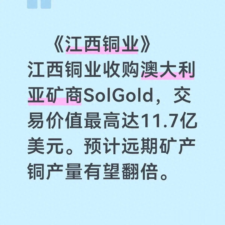 综合来看,江西铜业收购SolGold是一步立足长远的“棋”,虽短期面临财务压力,但长期将彻底破解资源瓶颈,巩固行业龙头地位。对普通投资者来说,看懂此次收购的战略价值,才能在江铜的投资中抓住真正的机会。